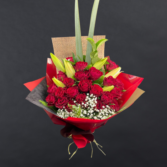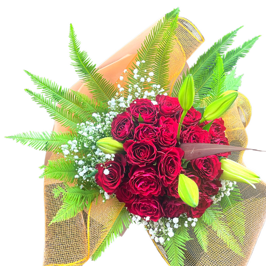 Shoulder Corsage With White Premium mini Roses + Gypsophila + Greenery