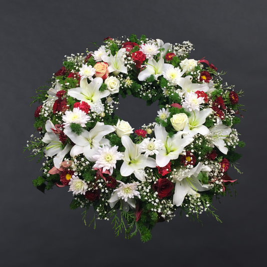 Wreath WIth Oriental Lilies and Chrysanthemum