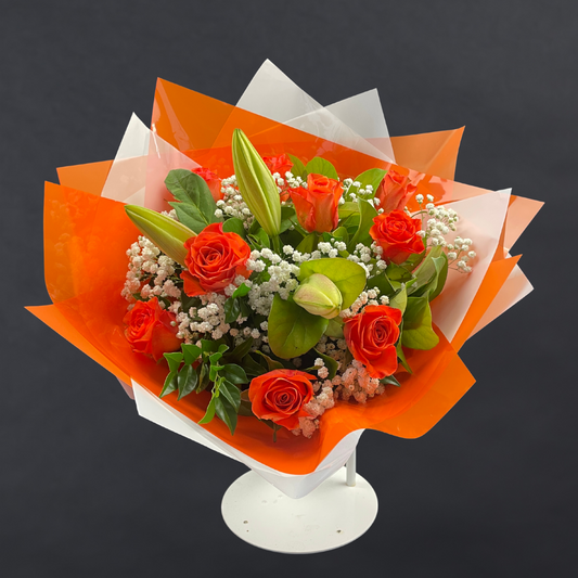 Elegant Roses Collection with Oriental Lilies - Orange - 10 STEMS