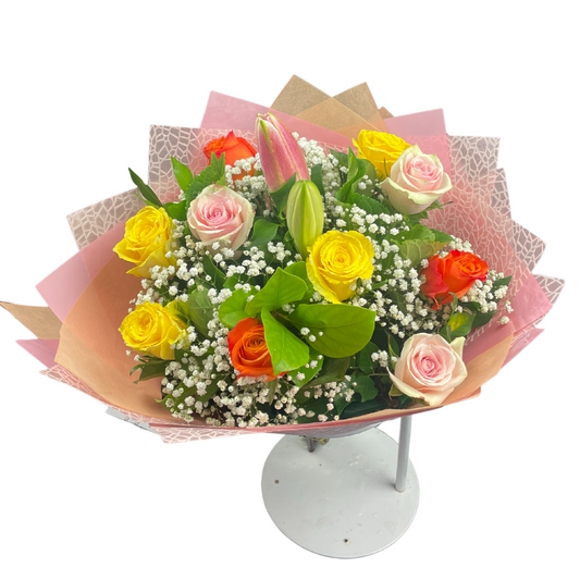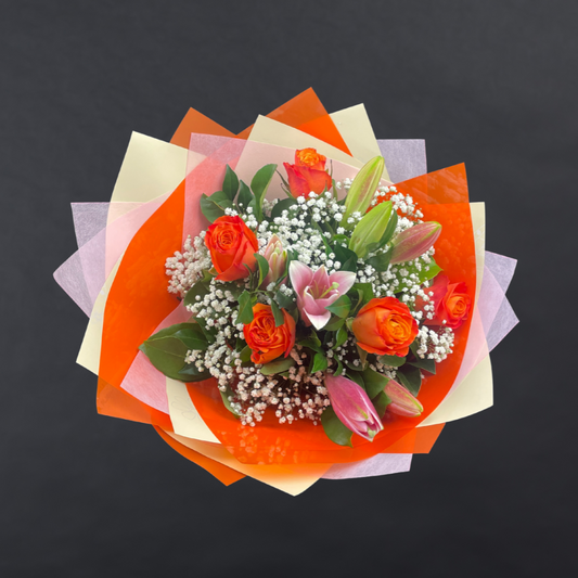 Elegant Roses Collection with Oriental Lilies - Orange - 5 STEMS