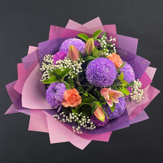 Blushing Signature With Pompom Disbuds and Roses - Purple